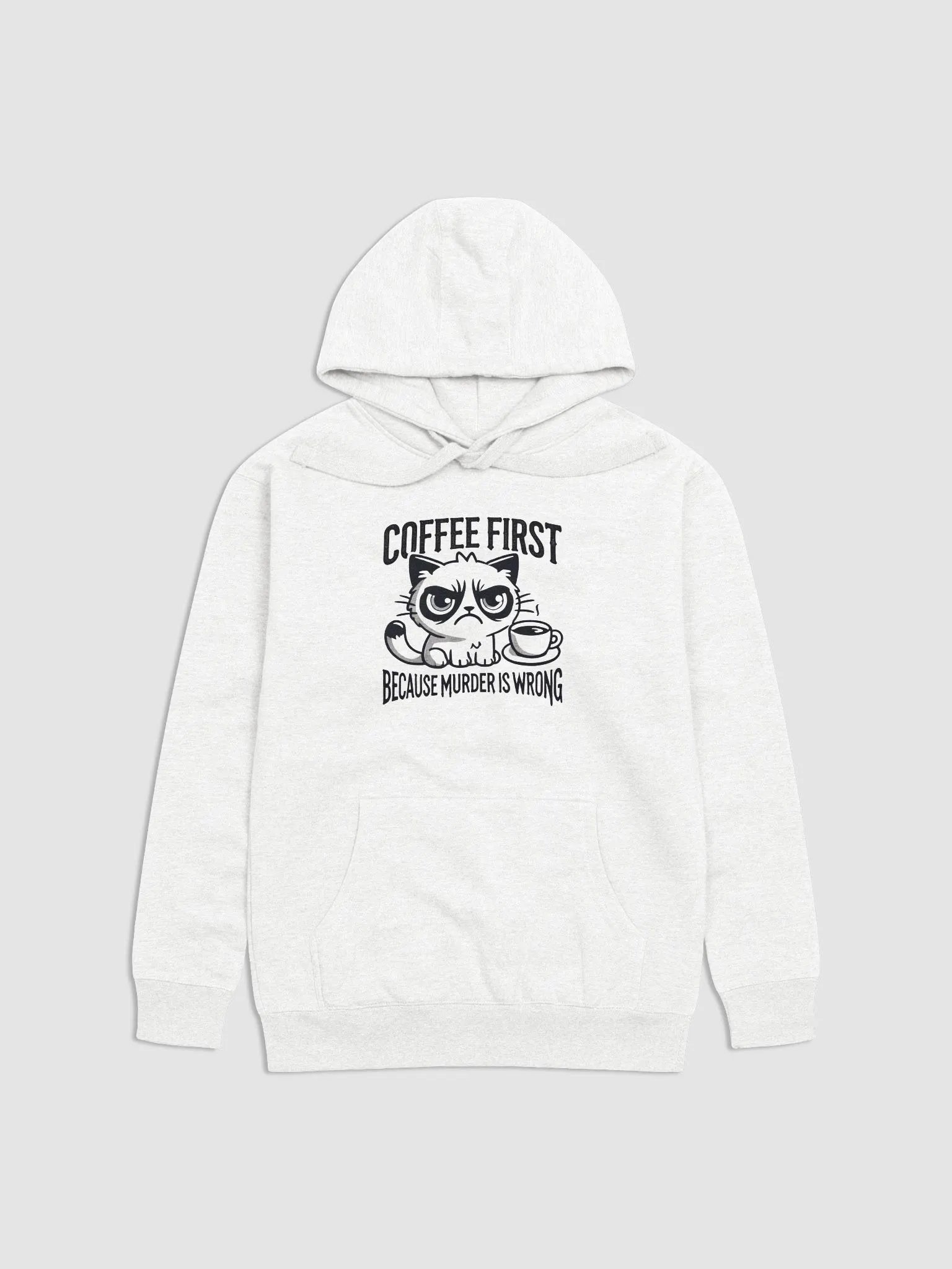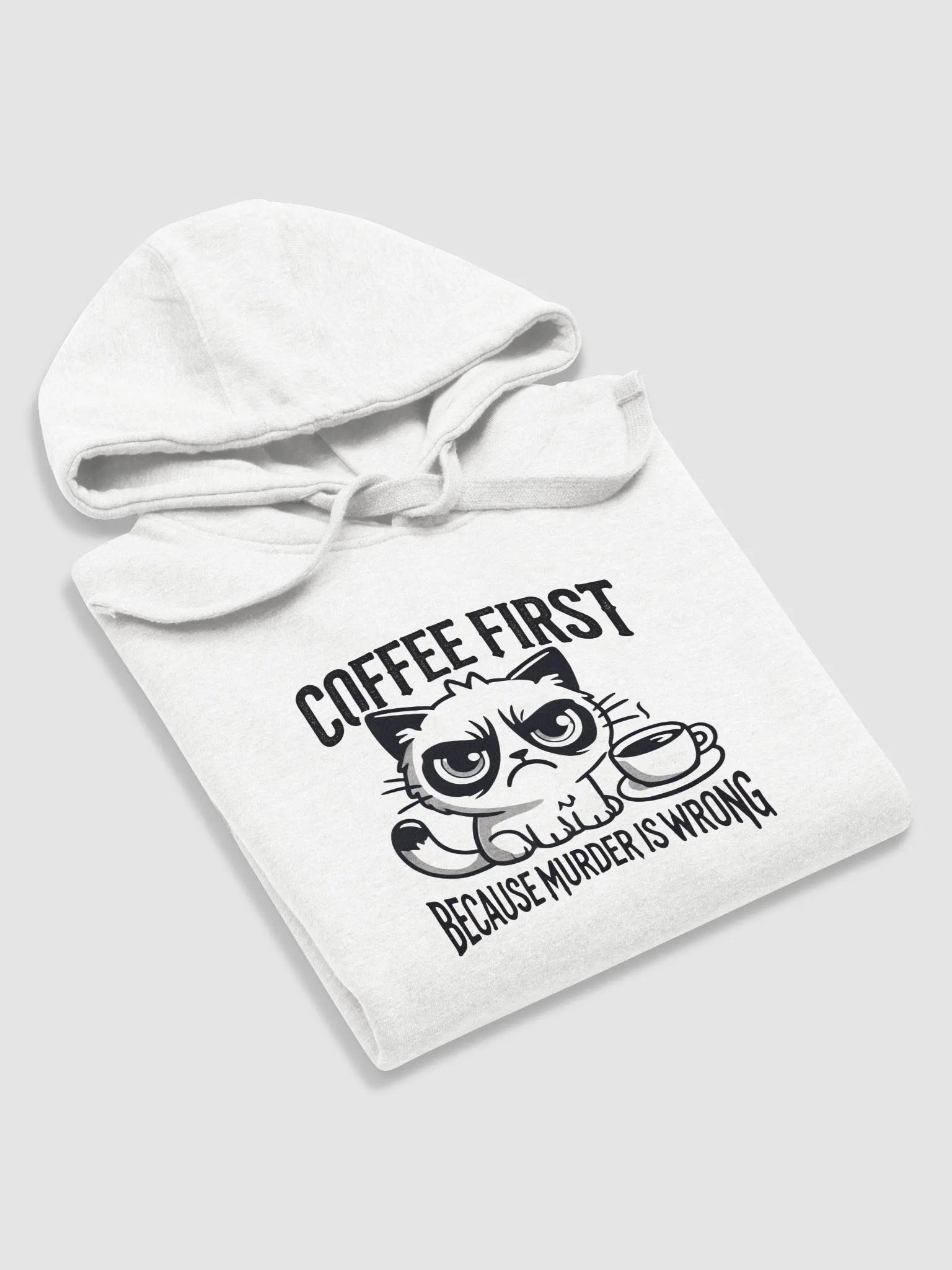 Start your day with some serious attitude in our "Coffee First, Because Murder is Wrong" hoodie! Featuring an adorably angry cat, this hoodie perfectly captures those pre-coffee moods. Crafted from a cozy blend of 65% ring-spun cotton and 35% polyester, the heavyweight fabric (8.5 oz) ensures warmth and comfort, while the regular fit is perfect for both men and women (though it can run a bit snug, so size up if you like a looser fit). Whether you’re a coffee lover or just not a morning person, this hoodie speaks your language. Grab yours and wear your coffee-first attitude with pride!