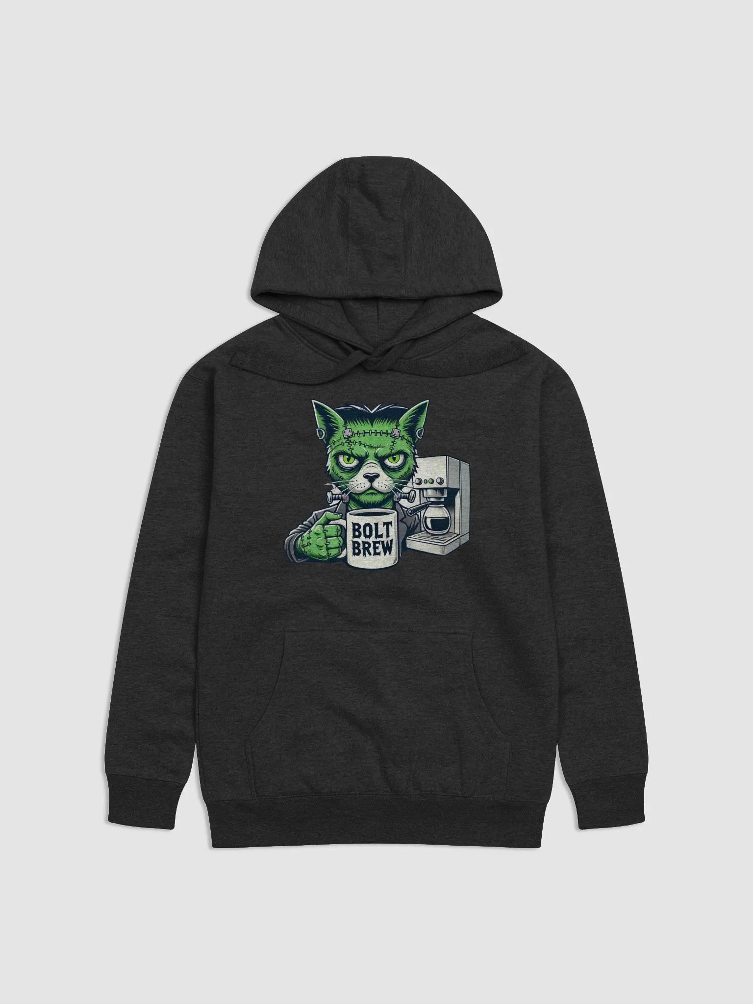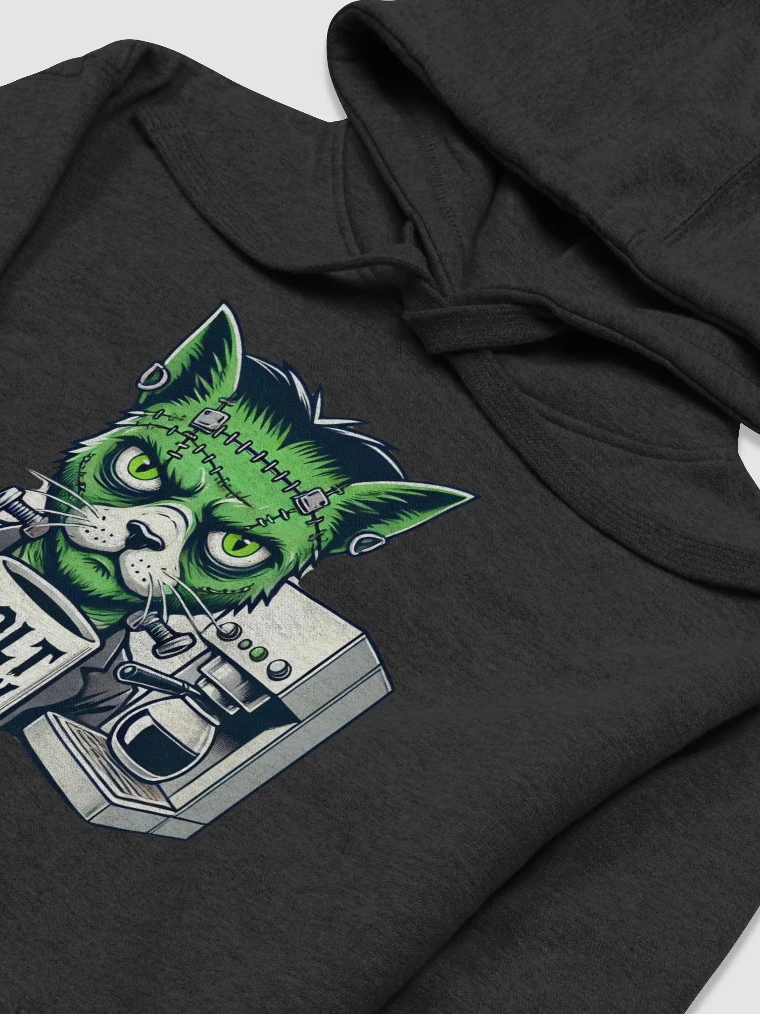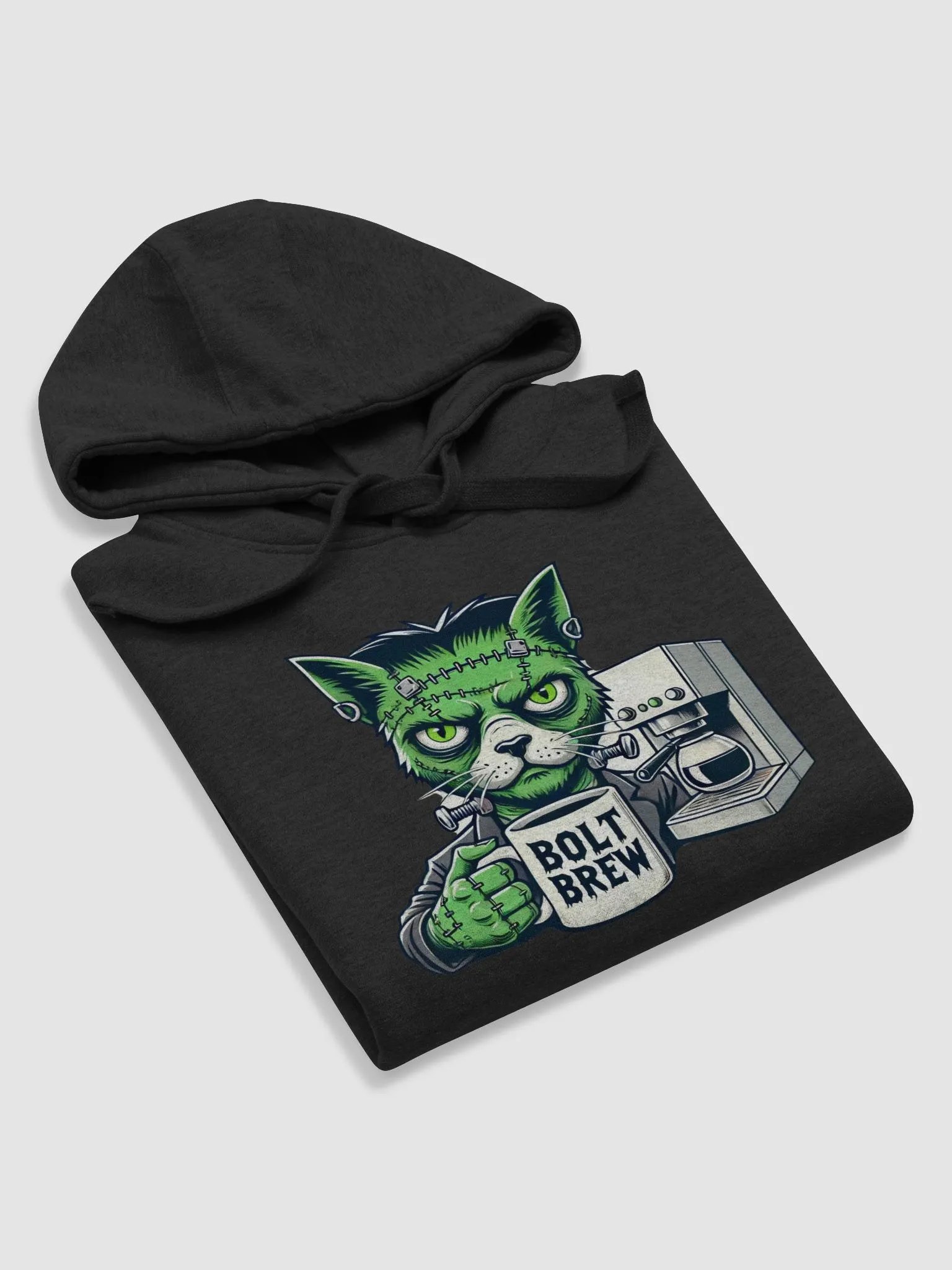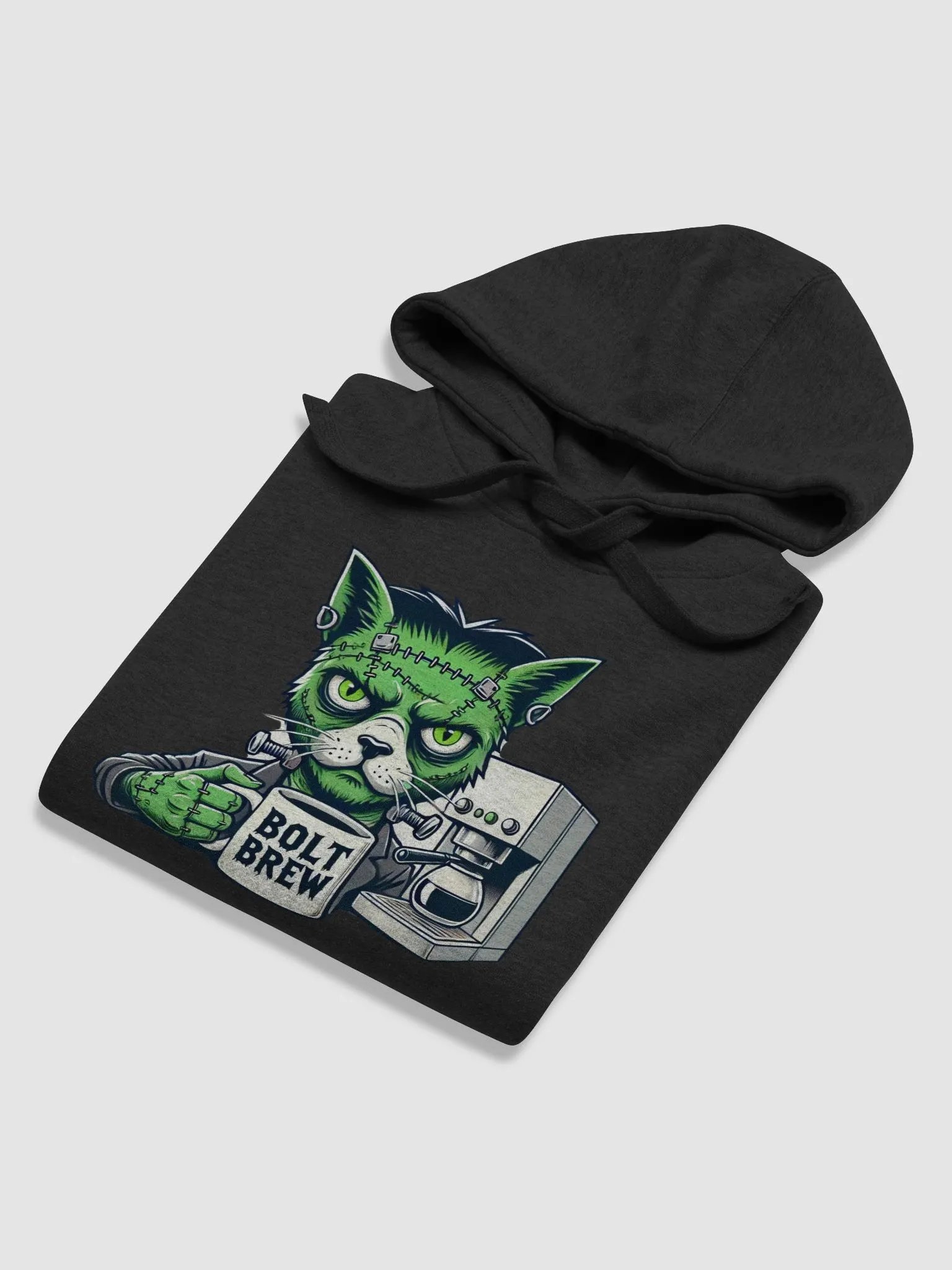 Get ready to supercharge your mornings with our "Franken-Cat Bolt Brew" hoodie! Featuring a fierce, coffee-loving cat inspired by the classic Frankenstein, this design is perfect for caffeine enthusiasts with a spooky side. With bold green stitching, bolts, and an intense gaze, this cat's got one mission: to power you up with the perfect brew.