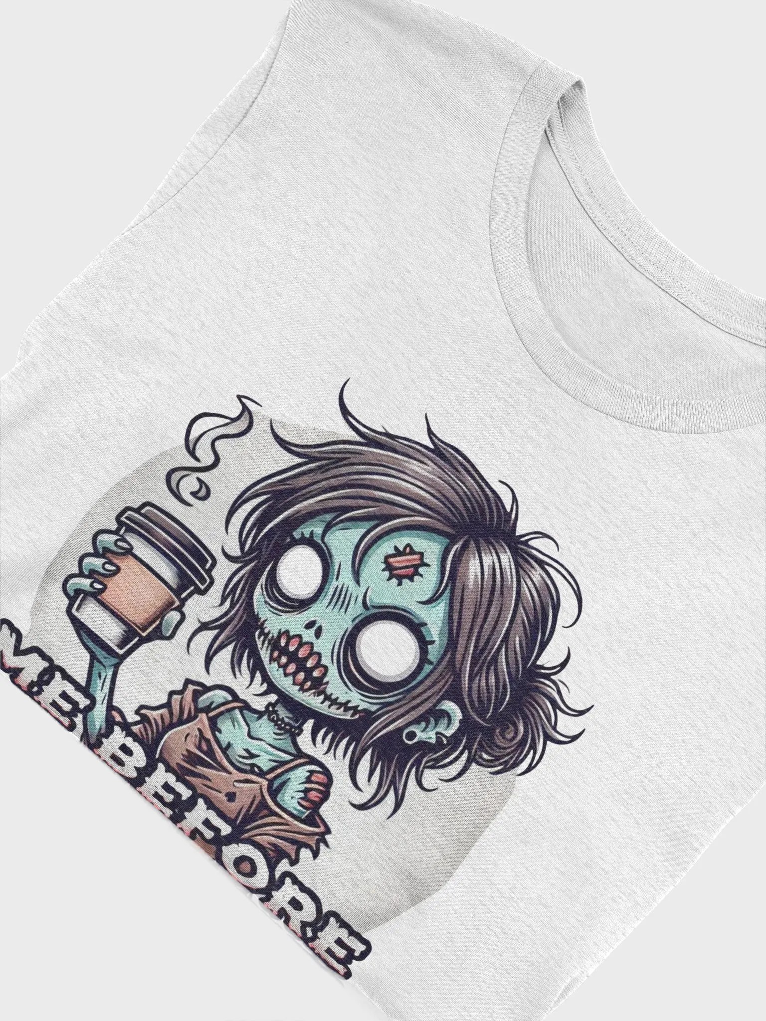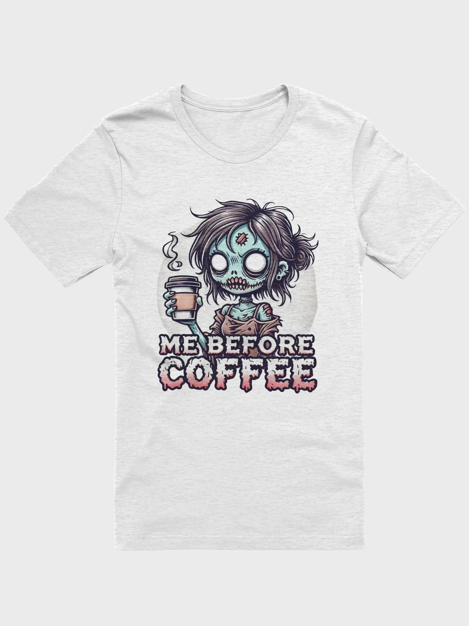 Capture the ultimate pre-coffee mood with the Me Before Coffee - Zombie Chick t-shirt! This quirky design features a coffee-deprived zombie chick, disheveled and clutching her much-needed cup of caffeine. With her wild hair and glazed eyes, this t-shirt perfectly illustrates the struggle before that first cup.